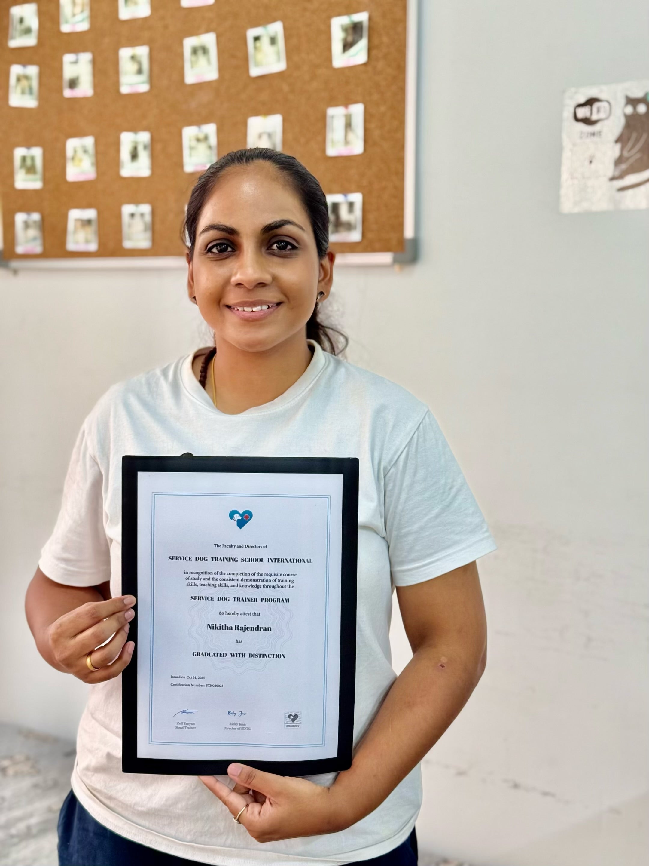 At Shvānas, your pet’s wellbeing is guided by real expertise. Our Co-founder, Ms Nikitha Rajendran is a certified Service Dog Trainer, a qualification normally reserved for professionals who train dogs to assist people with medical and physical needs.